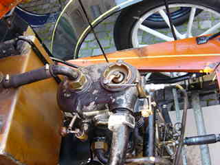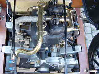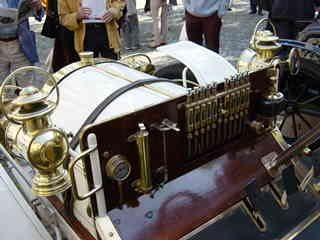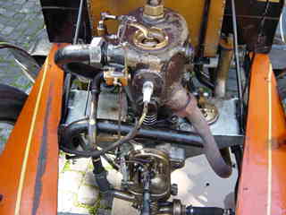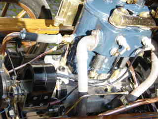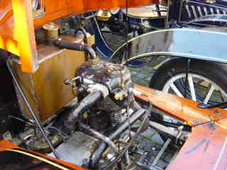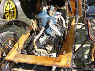 The 1903 de Dion - Bouton and details of her 2-cylinder engine.